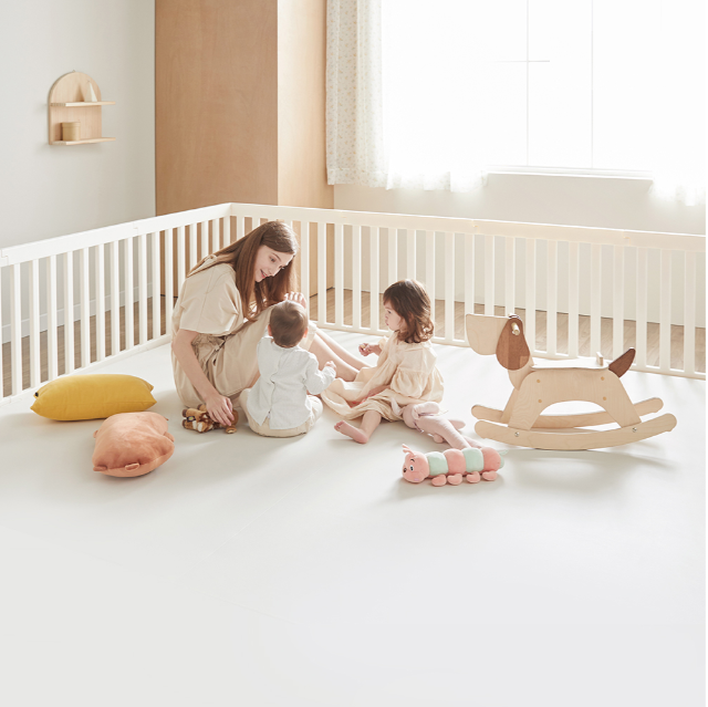 ALZIP Woodley Baby Room collects only the advantages of solid wood and plastic, preserving the simplicity and luxury of wood, while retaining the practicality of plastic, creating a cozy and comfortable space while safely protecting children who have just started crawling and walking.
