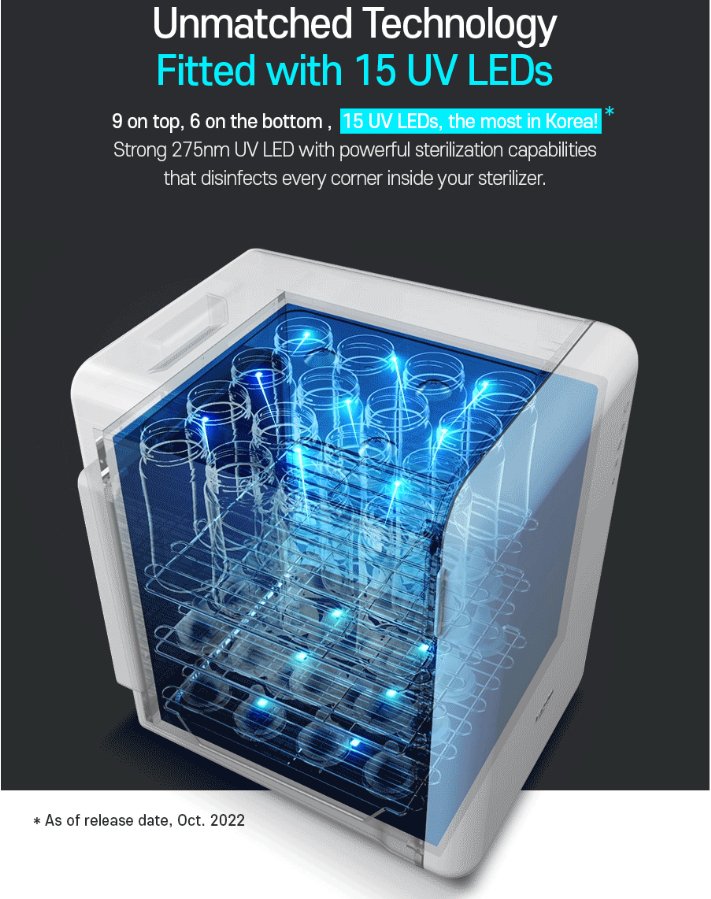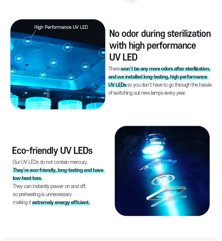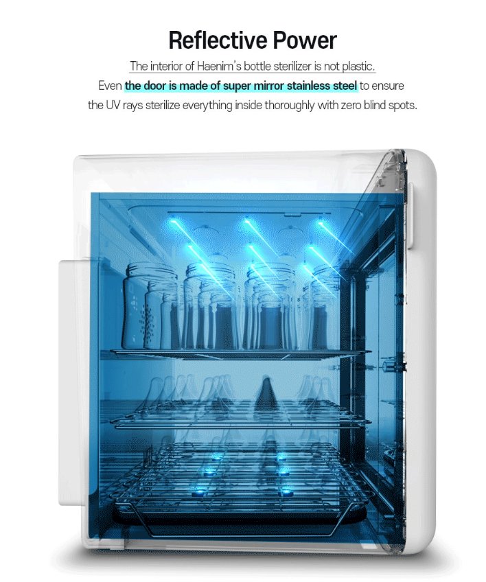 - Haenim UV Sterilizer is the only UV Sterilizer that is lab tested and scientifically proven to be 99.9% effective in killing Human Coronavirus, Influenza Virus, Norovirus and broad spectrum of harmful bacterial.