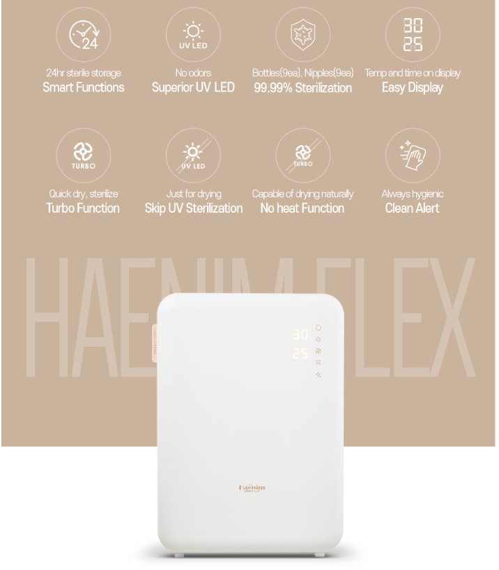 HAENIM Smart UV Baby Bottle Steriliser FLEX 5th generation Pink